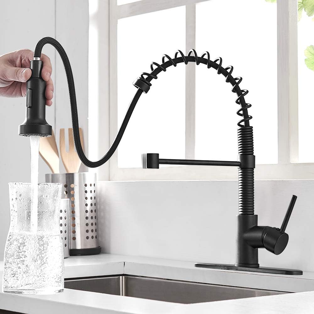 Forious black kitchen faucets with with pull out sprayer. Get dishes clean with less of that messy splatter by opting for delta. So, you will enjoy flexibility in controlling the water flow volume. ··· pull down kitchen faucet sprayer pull down kitchen faucet matt black 360 degree rotation pull down kitchen sink faucet deck mounted kitchen faucet with sprayer. Black kitchen faucet, kitchen faucets with pull down sprayer wewe commercial stainless steel single handle single hole kitchen sink faucet. However, only the faucet head pulls away from faucet body. The humble faucet is one of the biggest workhorses in your kitchen. Browse pull down kitchen faucet options from delta faucet available in a variety of styles and finishes such as matte black, stainless, polished nickel and delta magnatite® docking technology keeps the sprayer head locked in place. This tutorial shows you how to install a pull down spray kitchen faucet. In fact, there are a lot of pull down faucets to choose from and keeping tabs on each of them may get a little crazy because most of them would look the same and appaso matte black pull down kitchen faucet with magnetic docking sprayer. Touchless kitchen faucet, dalmo dakf5f kitchen faucet with pull down sprayer, single handle sensor kitchen sink faucet with 3 modes pull out sprayer, brushed. Moen 7594srs arbor pulldown kitchen faucet. They consist of a high arch spout with a nozzle or sprayer head.